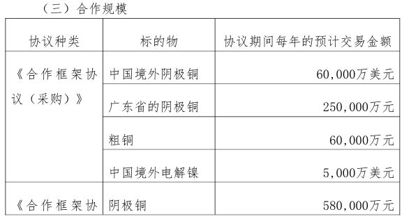 2026年1月19日盘后,江西铜业(SH600362,股价60.5元,市值2095亿元)披露,其与关联方中国兵工 物资集团有限公司(以下简称兵工物资)签署为期三年的合作框架协议,明确在阴极铜、粗铜、电解镍 等产品上建立购销关系。 具体交易内容包括:采购方面,中国境外阴极铜预计年交易金额为6亿美元,广东省阴极铜为25亿元人 民币,粗铜为6亿元人民币,中国境外电解镍为5000万美元;销售方面,阴极铜预计年交易额为58亿元 人民币,铜杆5亿元人民币、铝锭7亿元人民币、电解镍15亿元人民币、锌锭7亿元人民币、锡锭3000万 元人民币,以及贵金属和稀散金属5亿元。 公告指出,兵工物资持有江西铜业控股子公司江铜国际贸易有限公司29.52%股份,该交易构成关联交 易。董事会审议时,关联董事已回避表决,非关联董事一致通过。该交易未达到需提交股东会审议的标 准,无需股东会批准。 2025年12月25日,江西铜业发布公告,公司于2025年12月24日(伦敦当地时间)通过全资子公司江西铜 业(香港)投资有限公司(以下简称江铜香港投资),以每股28便士现金就收购索尔黄金(SolGold plc)全部已发行及将发行股本(不包括公司现已 ...