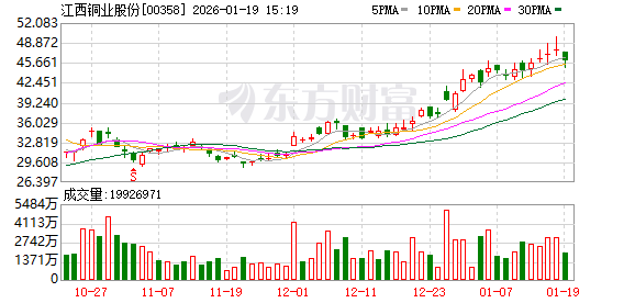 江西铜业股份跌超3% 机构预计短期铜价将维持高位区间震荡