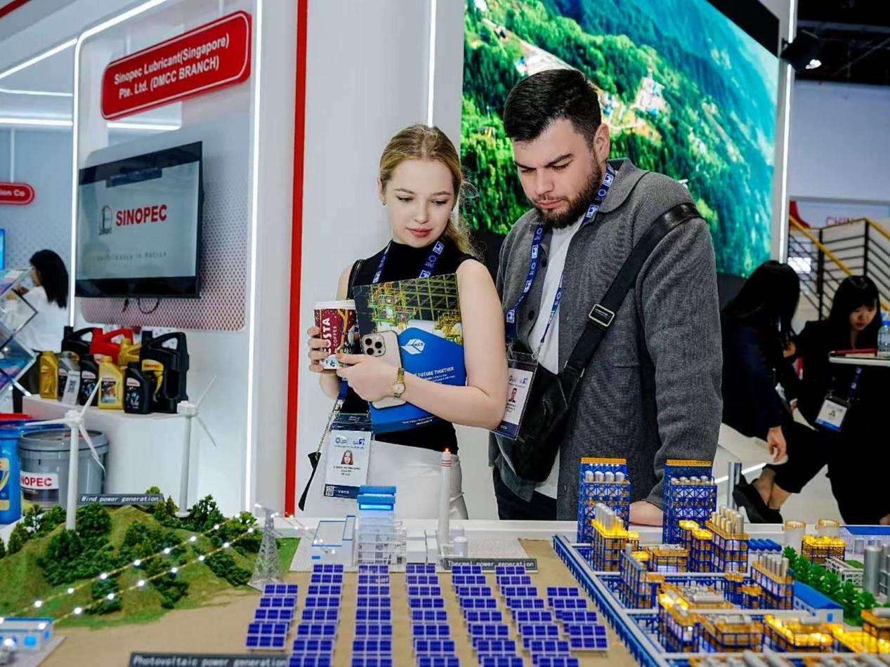 第41届阿布扎比国际石油展期间,与会人士在参观中国石化展出的绿电制氢项目沙盘。主办方供图 人民网迪拜11月6日电 (记者张志文)11月3日至6日,第41届阿布扎比国际石油展览会在阿联酋阿布扎比国家会展中心举行。本届展会以"能源·智能·影 响"为主题,汇聚全球能源产业领袖,围绕韧性建设与智能化解决方案展开务实交流与合作,吸引了全球2200多家企业参展,逾20万名专业人士参会。 展会期间,中国石化展出的绿电制氢项目沙盘受到与会人士高度关注。据介绍,该模型展示了太阳能发电、风能发电、电力输送、绿氢工厂、氢气储存 和输送、绿氢交通、绿氢炼化、地热能供暖(制冷)等综合应用场景,生动呈现了中国石化在可再生能源制氢成本降低和规模增长方面的成果, 此外,中国石化展台还展示了其自主研发的压裂机组沙盘模型,相关成套设备集成集群控制系统,可实现仪表远程操控,具有施工压力高、流量大、机 动性能好等特点。 ...