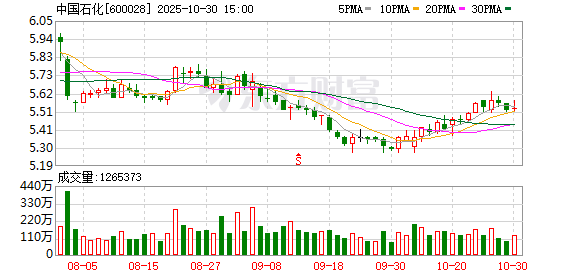 中国石化(600028)披露2025年第三季度报告,10月30日股价上涨0.18%