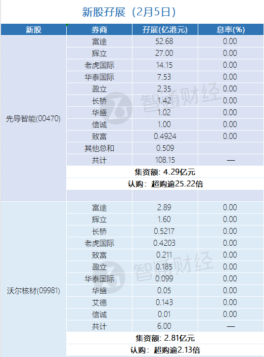 新股孖展统计 | 2月5日