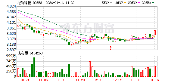 公司股价表现 - 力劲科技(00558.HK)股价午后一度上涨超过8% [2] - 截至发稿时,股价上涨7.39%,报3.78港元 [2] - 成交额为1707.71万港元 [2]