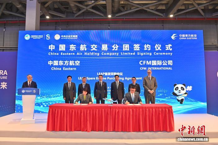 签约现场,东航与CFM国际公司延续合作,签署6.15亿美元LEAP-1A发动机采购协议。LEAP系列发动 机广泛采用3D编织复合材料制造工艺,使每台发动机减重500磅,发动机风扇叶片更轻更耐用。较上一 代发动机,LEAP系列发动机油耗和碳排放减少15%-20%,将为东航机队升级与"双碳"目标实现提供硬 核支撑。首批LEAP-1A发动机自2018年交付东航使用以来,凭借其卓越的性能、高可靠性和出色的燃 油效率,有效保障了东航A320NEO机队的安全平稳运行。 "绿色大单"连同与霍尼韦尔签署的航材采购及维修协议等,东航本届中国国际进口博览会与参展商达成 的一年期展位成交总额突破3.3亿美元,较第七届中国国际进口博览会的2.7亿美元实现显著增长,也创 下历年新高。 在往年中国国际进口博览会的基础上,本届中国国际进口博览会东航进一步挖掘航材、航油保障服务新 模式,与汉莎技术、赛峰集团、出光兴产等签署多份航材采购、航材修理以及航油采购协议,助力公司 降本增效。 深化"一带一路"经贸合作,共创全球旅客服务新体验 中新网上海11月6日电 (记者 殷立勤)11月6日,在第八届中国国际进口博览会中央企业交易团集中签约 现场,中 ...