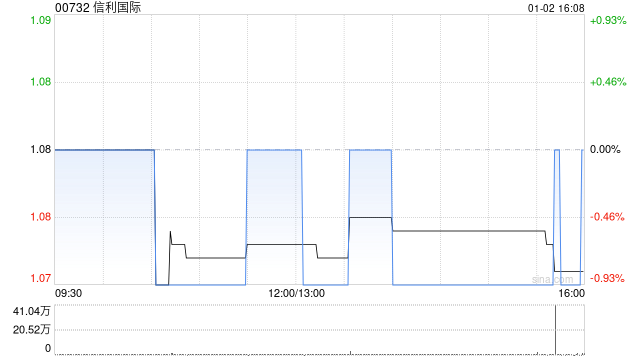 信利国际(00732)1月2日斥资43.44万港元回购40.6万股