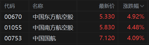 港股异动丨三大航空股强势 东航涨近5% 南航、国航涨超4% 假期旺季来临
