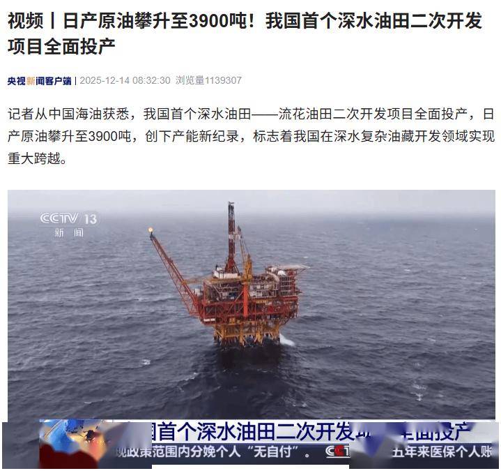 我国首个深水油田二次开发项目全面投产,日产原油3900吨创纪录