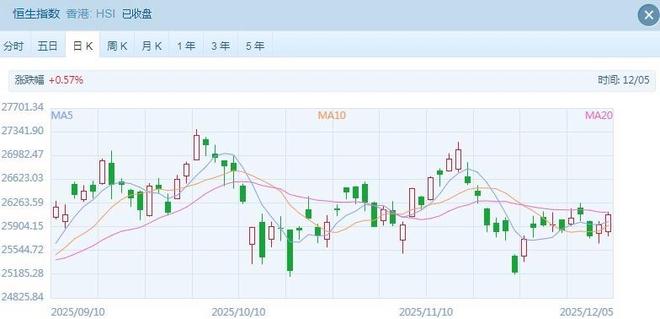 港股市场整体表现 - 港股市场呈现先抑后扬的震荡回升态势 恒生指数午后成功重返26000点整数关口 市场情绪显著提振 [1] - 恒生指数收盘报26085.08点 上涨149.18点 涨幅0.58% [2] - 恒生科技指数收盘报5662.46点 上涨47.03点 涨幅0.84% 表现优于大盘 [3] 板块及个股表现 - 大金融板块成为午后市场拉升的核心动力 保险股表现尤为突出 中国平安涨超6% 中国太平涨超7% [5] - 券商股联动上涨 华泰证券 申万宏源香港 弘业期货涨超3% [5] - 科网股板块普涨带动市场人气 百度集团-SW涨超5% 快手-W涨超2% [5] - 有色金属板块早盘表现强势 江西铜业股份涨超6% [5] - 新股表现疲弱 今日上市的天域半导体和遇见小面分别下跌30.17%和27.84% 均跌破发售价 [5] 资金流向 - 今日南向资金净买入额为13.41亿港元 金额与昨日几乎持平 [8] 机构后市展望 - 香港永丰金融集团指出 临近年底港股投资者无心恋战者居多 部分投资者选择获利了结 基金经理也有放假情绪 [7] - 该机构认为 年初两大事件令全球投资者对A股和港股改观 中长期看好 市场在4月短暂下跌后反复向上 于10月初触及年内高位27381点后转为横盘整理 [7] - 建银国际指出 2026年上半年港股有条件再创新高 主要催化剂包括市场对“十五五”开局经济增长动能 人民币汇率 物价走势和企业盈利前景的再评估 [9] - 其他催化剂包括“十五五”规划纲要相关文件出炉 12月中旬中央经济工作会议 一季度地方及中央两会等重要政策窗口 美联储降息节奏及力度 以及重大技术突破和AI相关业务盈利状况等 [9]