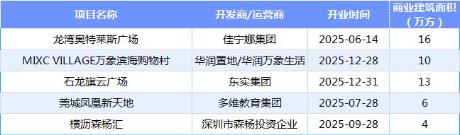 2025年东莞商业市场回顾 - 2025年全年新开5座商业项目,新增商业体量约49万平方米 [1] - 截至2025年末,东莞存量商业项目达115个,总体量突破700万平方米 [1] - 龙湾奥特莱斯广场于6月14日开业,商业面积16万平方米,是东莞主城区首个奥特莱斯项目 [1] - MIXC VILLAGE万象滨海购物村于12月28日亮相,商业面积10万平方米,为街区式奥莱形态 [1] - 石龙旗云广场于12月31日启幕,商业体量13万平方米,是东莞北部目前最大的集中式商业体 [1] - 莞城凤凰新天地于7月28日入市,商业面积6万平方米 [1] - 横沥森扬汇于9月28日开业,商业面积4万平方米,是横沥镇首个存量盘活的集中式商业体 [1] - 头部零售品牌加速布局,山姆会员店厚街项目预计2026年开业,宜家家居东莞首店将于2026年2月初开业,盒马加速下沉至多个镇街 [2] 2026年东莞商业市场展望 - 2026年计划新开5座重量级商业项目,新增商业体量超40万平方米 [3] - 新项目涵盖高端零售、文旅融合、生态街区、历史焕新等多种形态,目标构建“品质消费之都” [3] 2026年重点新开项目详情 - **鹏瑞天玥广场**:位于南城街道,商业体量11.7万平方米,计划2026年第四季度开业,由鹏瑞集团自持运营 [4][5] - 鹏瑞天玥广场为集高端商业、甲级写字楼与顶级住宅于一体的超级综合体,已签约永旺超市旗舰店、ART HOUSE影院东莞首店等主力品牌 [7] - **东莞万象城**:位于国际商务区核心,商业建筑面积约23万平方米,计划2026年底开业,由华润置地及华润万象生活运营 [8] - 东莞万象城定位为城市商业旗舰,是大湾区城市群(深圳外)落地的第二座万象城,拟打造“站城一体”TOD公园式商业 [10] - **松山湖欢乐海岸**:位于松山湖北部CBD,商业体量8.5万平方米,计划2026年第四季度开业,由华侨城集团及商管运营 [11] - 松山湖欢乐海岸项目总投资超40亿元,总建筑面积约18万平方米,定位为融合生态与文旅商业的城市活力地标 [13] - **The Hill旗峰山道**:位于旗峰山脚下,商业体量3万平方米,计划2026年开业,由广东中天实业集团及天晋商管运营 [14] - The Hill旗峰山道定位为“山系公园式商业街区”,招商聚焦特色餐饮、运动品牌、文创零售等小众业态 [16] - **石龙镇中山路历史文化街区**:位于石龙镇老城区核心,商业体量约2万平方米,计划2026年开业,由石龙镇政府与中青旅联科合作 [17] - 石龙镇中山路项目总投资5.5亿元,改造范围约15.91公顷,已引入10余家非遗项目,旨在打造“东莞非遗第一街”及夜间文旅消费地标 [17] 行业趋势总结 - 东莞商业正经历从“量”到“质”的深刻跃迁,通过万象城、天玥广场、欢乐海岸等标杆项目补齐高端商业、文旅融合等多维度短板 [17] - 行业展现出制造强市向“品质消费之都”转型的决心与动能 [17]