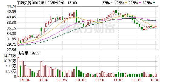 公告显示,千味央厨将在12月2日8时至12月16日24时期间开展股东回馈活动。本次活动面向在12月1日下午收市时持有公司股份100股(含)以上的股东, 自然人股东可领取1份价值200元的公司产品礼包,法人股东可领取3份。 千味央厨表示,本次活动是公司践行股东回馈理念、建立多元化股东回报机制的切实举措,谨以此表达公司对股东长期以来坚定支持与关注的诚挚谢意。 本次活动不会对公司经营情况产生影响。 根据Choice数据,截至10月31日,千味央厨股东户数为9289户,户均持股数量约为1.04万股,户均持股金额约为41.99万元。公司前十大股东合计持股比例 为55.81%。 公开资料显示,千味央厨是国内知名的餐饮速冻面米制品供应商,公司主要为餐饮企业提供定制化、标准化的预制半成品。公司主营的预制半成品按照菜 单结构划分为主食类、小食类、烘焙甜品类、冷冻调理菜肴类及其他四大类。 通过多品牌、多品类策略,千味央厨布局了"千味央厨""兴客坊""味宝"等多个品牌,实现全渠道覆盖。其中,主品牌"千味央厨"深耕B端市场,涵盖主食 类、小食类、烘焙甜品类、冷冻调理菜肴类及其他等品类;副品牌"兴客坊"依托主品牌影响力,主打冷冻调理菜 ...