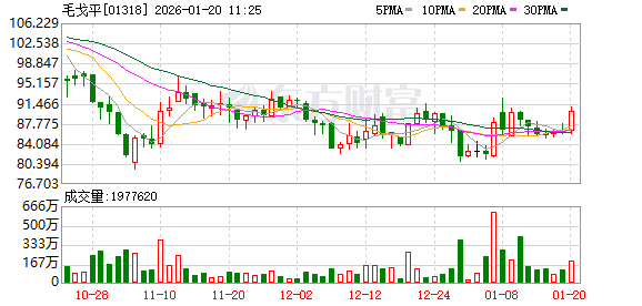 股价表现 - 毛戈平公司股价在交易时段内上涨超过5%,截至发稿时涨幅为5.33% [2] - 公司股价报90.9港元 [2] - 成交额达到1.55亿港元 [2]