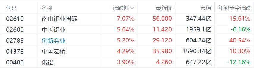 港股异动丨铝业股走强,中国宏桥涨超4%,中东铝生产设施遭袭推动铝价大涨