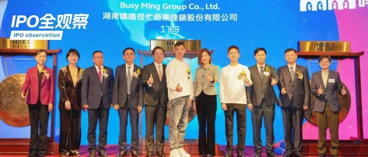 炒股就看金麒麟分析师研报,权威,专业,及时,全面,助您挖掘潜力主题机会! 来源:独角兽IPO 万店时代的中国休闲零食市场,一个由两大品牌合并而成的行业巨头。 本文为独角兽IPO编辑撰写 作者 | 独角君 公众号回复"鸣鸣很忙"获取最新招股书。 2026年1月28日,中国最大的休闲食品饮料连锁零售商——湖南鸣鸣很忙商业连锁股份有限公司正式在 港交所主板挂牌上市,股份代号01768。 这家自一家社区小店起步的企业,如今已成为拥有超过2万家门店的行业巨头。 1► 上市情况 鸣鸣很忙的上市备受市场瞩目。香港公开发售部分获得1899.49倍认购,显示出投资者对这家零食连锁 企业的浓厚兴趣。 上市盛况 昨日的暗盘交易中,公司股价已经大幅上涨。暗盘收盘报价412港元,较发行价飙升超过70%。 该股发行价区间为229.60至236.60港元,每手买卖单位100股。今日正式在联交所开始买卖。 募资情况 此次IPO规模可观,公司计划全球发售1410.11万股H股,其中国际发售股份约1269.09万股,香港公开发 售股份约141.02万股。 以发售价上限计算,公司预计将募集资金总额高达33.4亿港元。 更引人注目的是,鸣鸣很忙此次 ...