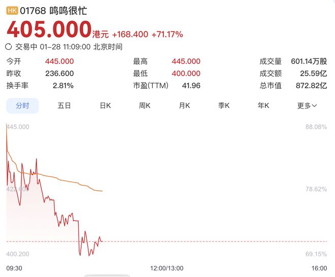 鸣鸣很忙今日港交所挂牌上市,开盘大涨超88%