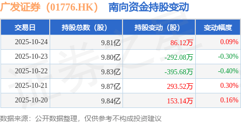 广发证券(01776.HK):10月24日南向资金增持86.12万股