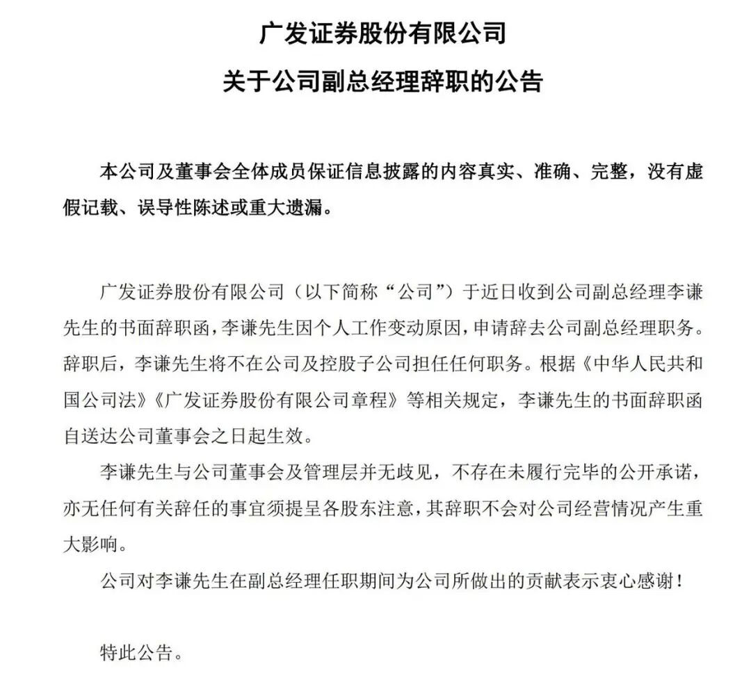 广发证券原副总李谦,拟任平安证券总经理