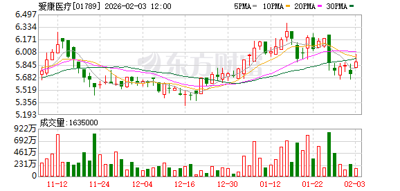 股价表现 - 爱康医疗(01789 HK)股价一度上涨超过4% [2] - 截至发稿时,股价上涨2.97%,报5.89港元 [2] - 成交额为925.86万港元 [2]
