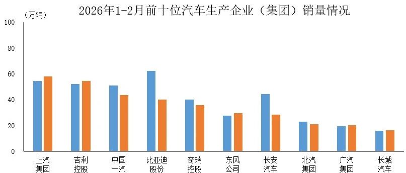 数据简报 | 2026年1-2月前十位汽车生产企业(集团)销售情况简析