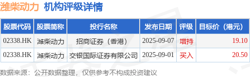 美银证券:升潍柴动力(02338.HK)目标价至21.5港元 第三季净利润胜预期