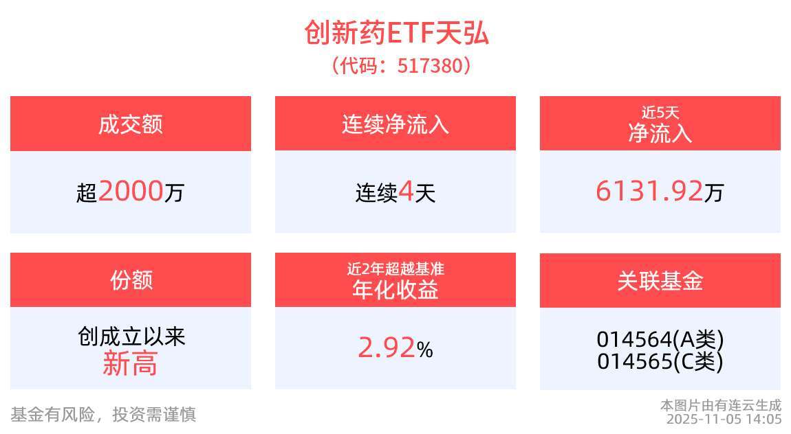 药不能停!生物医药ETF(159859)实时净申购超1.1亿份,全市场孤品·创新药ETF天弘(517380)连续4天净流入超6100万元