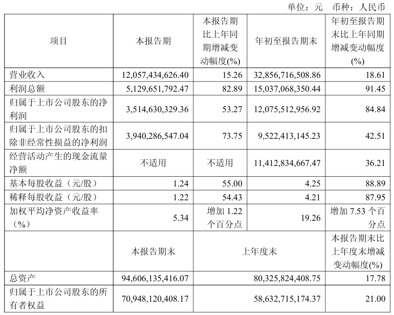 财务业绩概览 - 公司前三季度累计收入达到328.6亿元,同比增长18.6% [1] - 公司前三季度经调整Non-IFRS归母净利润为105.4亿元,同比增长43.4%,已达到去年全年规模 [1] - 第三季度营收及经调整归母净利润均为公司历史上单季度最高水平 [1]