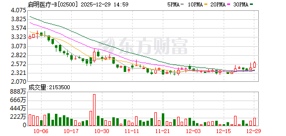 截至目前,Cardiovalve系统已在欧洲顺利完成确证性临床研究全部150例患者入组,并于今年的伦敦心 脏瓣膜介入治疗会议上正式发布TARGET研究的中期结果,数据表现积极,受到海外研究者专家团队的 认可与好评。此次Cardiovalve系统正式步入CE认证阶段,意味着启明医疗在"四瓣一体"的产品战略布 局上更进一步,在已成熟的主瓣、肺瓣产品线基础上,进一步完善了三尖瓣治疗矩阵。 消息面上,启明医疗近期宣布,Cardiovalve经导管三尖瓣置换系统已正式向欧洲公告机构递交CE认证 的全部申请资料,标志着该产品在欧洲市场的准入进程迈出关键一步。 启明医疗-B(02500)盘中涨超7%,截至发稿,涨4.05%,报2.57港元,成交额489.42万港元。 ...