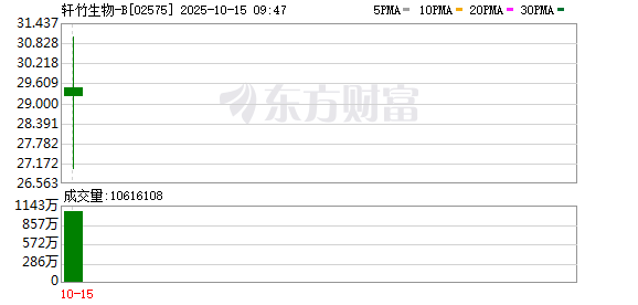 轩竹生物-B首挂上市 早盘高开153.97% 旗下已有三款产品获批上市