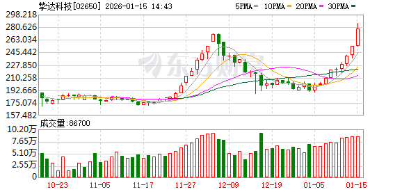 股价表现 - 挚达科技(02650 HK)股价大幅上涨 盘中涨幅超过12% 最高触及285 6港元 创下上市以来新高[2] - 截至发稿时 股价上涨10 71% 报281 2港元[2] - 成交金额为2256 41万港元[2]
