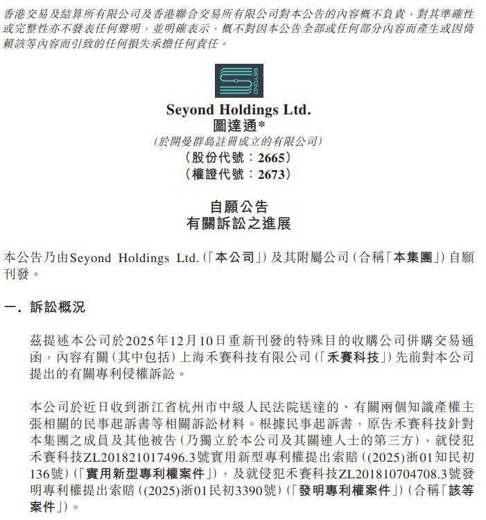 图达通(02665) - 自愿公告 有关诉讼之进展