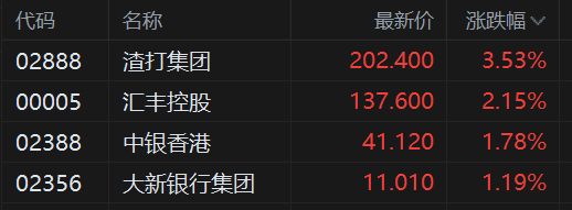 港股香港本地银行股普遍上涨 渣打集团、汇丰控股齐创新高