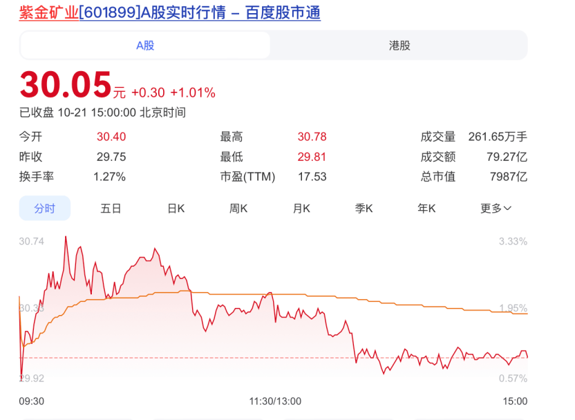 紫金矿业以近4000吨黄金储量领跑行业 今年前三季度实现约379亿利润