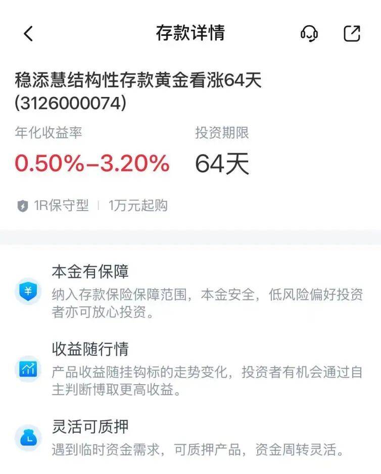 多家银行推出黄金挂钩结构性存款 随着国际金价的持续走强,与黄金相关标的挂钩的银行结构性存款也"火"了。 据梳理统计,截至目前,已经有交通银行、招商银行、兴业银行、民生银行、江苏银行、上海银行、上海农商银行等多家中资银行以及星展 银行、渣打银行等外资银行相继推出了此类特色存款产品。同时,甚至有部分热门产品还呈现了"上架即售罄"的热销状态。 多位银行业内人士表示,随着金价的不断创新高,当前和黄金挂钩的产品普遍都比较好卖,且近期储户存款大规模到期,不少投资者于近期 开始积极咨询起挂钩黄金的结构性存款情况。此外,多家上市公司也于近期披露了认购该产品情况,认购总规模也远超去年同期。 【导读】银行积极热销黄金挂钩结构性存款,上市公司认购规模远超去年同期 近期,多家银行App均推出了和黄金挂钩的结构性存款产品。例如,交通银行App显示了4款名为"稳添慧"的结构性存款产品,分别为黄金看 涨64天、黄金看跌64天、股指看涨36天和股指看跌36天。这些产品均为R1低风险产品,1万元起购,预期年化收益区间为0.5%—3.20%。 中国基金报记者 马嘉昕 记者查阅招商银行App发现,该行在售的黄金挂钩的结构性存款数量繁多,普遍期限在 ...
