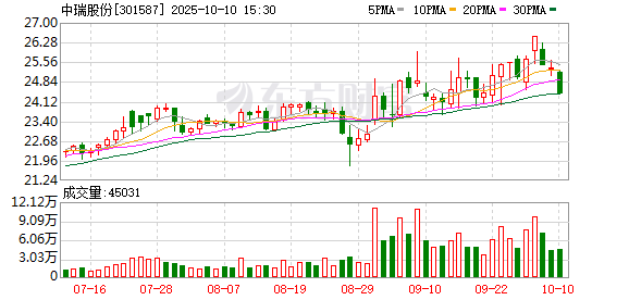 (文章来源:证券日报) 证券日报网讯 10月10日晚间,中瑞股份发布公告称,2025年10月10日,公司首次通过回购专用证券账 户以集中竞价交易方式回购公司股份203,390股,占公司目前总股本的0.14%。 ...