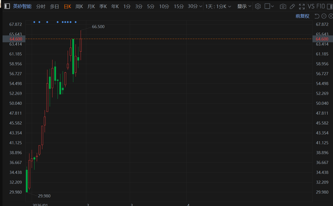 每经AI快讯,英硅智能(03696.HK)早盘一度涨超11%,高见66.45港元,再创历史新高。截至发稿,涨 9.88%,报65.6港元,成交额5531.91万港元。 ...