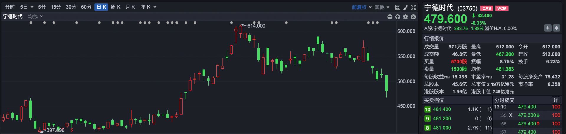 宁德时代H股跌超6% 基石投资者限售股今日解禁