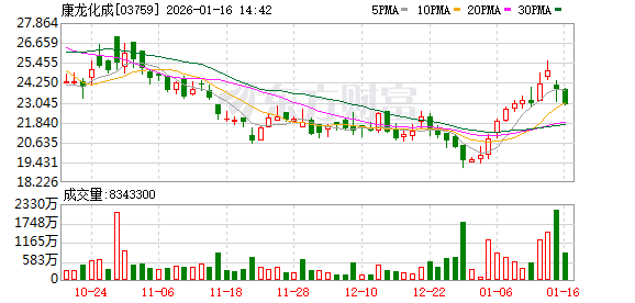 公司股价与交易动态 - 康龙化成H股股价再跌超3%,截至发稿跌3.41%,报22.12港元,成交额1.13亿港元 [1] 公司资本运作 - 公司拟配售近5844.08万股新H股,配售价为每股22.82港元 [1] - 此次配售价较1月14日收市价折让约8.5% [1] - 募资所得款项净额约13.19亿港元,其中约70%将用于公司的项目建设,以加强实验室服务设施、药物工艺开发及生产设施的能力及产能 [1] 公司财务业绩预告 - 公司预计2025年归属于上市公司股东的净利润为16.14亿元至16.86亿元,比上年同期下降6%至10% [1] - 报告期内,公司营业收入同比增长13%至16% [1] - 报告期内,公司扣除非经常性损益后的净利润同比增长36%至41% [1]