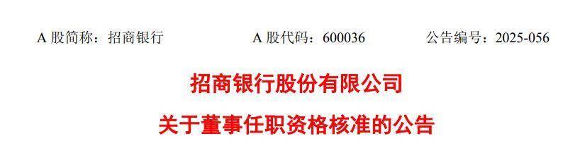 瑞财经 钟鸣辰11月4日,招商银行(SH600036)发布人事公告,宣布邓仁杰的董事任职资格获核准。 公告显示,招商银行近日收到《国家金融监督管理总局关于邓仁杰招商银行董事任职资格的批复》,邓仁杰招商银 行董事的任职资格已获核准。其担任公司股东董事(非执行董事)的任期自2025年10月30日起生效,至公司第十三 届董事会届满之日止。 邓仁杰,1970年2月出生,中国国籍,大连海事大学国际法学专业硕士。现任招商局集团有限公司副总经理,兼任招 商局创新科技(集团)有限公司董事长、招商局检测技术控股有限公司董事长、招商平安资产管理有限责任公司董 事长。曾任招商局集团有限公司总经理助理兼办公厅主任,曾兼任招商局公路网络科技控股股份有限公司(深圳证 券交易所上市公司)董事长、招商局港口集团股份有限公司(深圳证券交易所上市公司)董事长、招商局港口控股 有限公司(香港联合交易所有限公司上市公司)董事会主席、辽宁港口集团有限公司董事长、招商局工业集团有限 公司董事长等职务。 10月29日,招商银行发布2025年三季报。报告显示,公司前三季度营业收入为2514.20亿元,同比下降0.51%;归母 净利润为1137.72亿元,同 ...