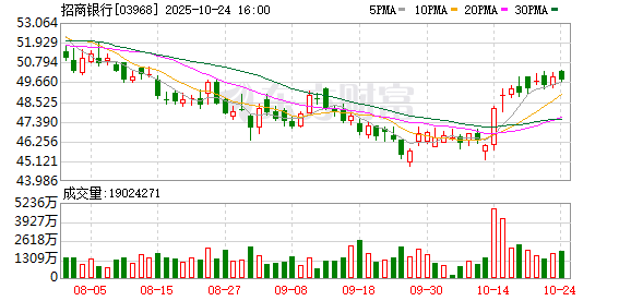 摩根大通在招商银行H股的持股比例于10月20日从4.94%升至5.00%