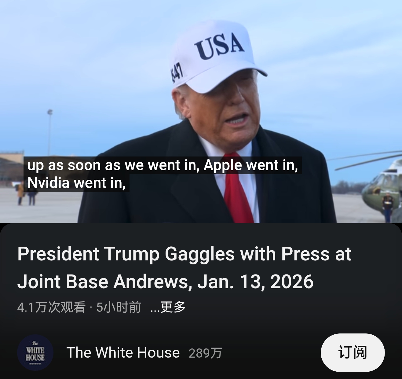 核心事件 - 前总统特朗普在采访中透露“苹果公司已出手投资英特尔” [1] - 该信息来源于白宫官方发布的视频 [1] - 截至新闻发布时,苹果公司与英特尔均未对此事予以证实 [1]