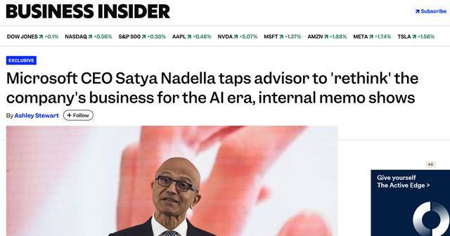 微软CEO纳德拉拟彻底重塑公司商业模式,并任命“AI经济学顾问”