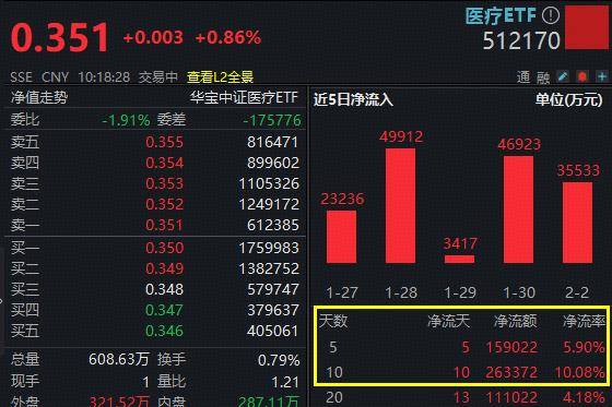 ETF盘中资讯|AI医疗概念异动,方舟健客盘初狂飙20%!港股通医疗ETF华宝(159137)冲上2%终结三连跌,医疗ETF巨量吸金