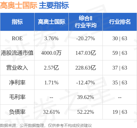公司更名与市场表现 - 董事会建议将公司英文名称由"KOS International Holdings Limited"改为"KOS International Talent Group Limited",中文双重外文名称由"高奥士国际控股有限公司"改为"高奥士国际人才集团有限公司" [1] - 截至2026年1月20日收盘,公司股价报收于0.05港元,上涨2.0%,成交量为16.0万股,成交额为7710.0港元 [1] - 投行对该股关注度不高,90天内无投行对其给出评级 [1] 公司财务与估值指标 - 公司港股市值为4000万港元,在综合Ⅱ行业中排名第59位 [1] - 公司营业收入为2.57亿港元,在行业中排名第37位 [1] - 公司净利率为1.71%,在行业中排名第35位,高于行业平均的-12.47% [1] - 公司ROE为3.76%,在行业中排名第30位,高于行业平均的-20.27% [1] - 公司负债率为32.61%,在行业中排名第19位,低于行业平均的52.22% [1] - 公司港股流通市值为4000.0万港元,远低于行业平均的147.03亿港元 [1]