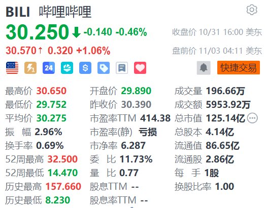 格隆汇11月3日丨爱奇艺、小鹏汽车涨超1%,B站、网易、百度、蔚来涨近1%,京东涨0.06%,拼多多 涨0.03%;阿里巴巴跌近1% ...
