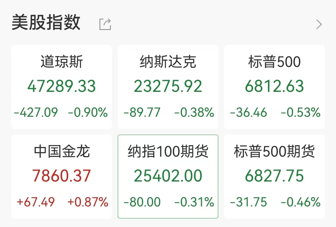 美股全线收跌,中国资产走强