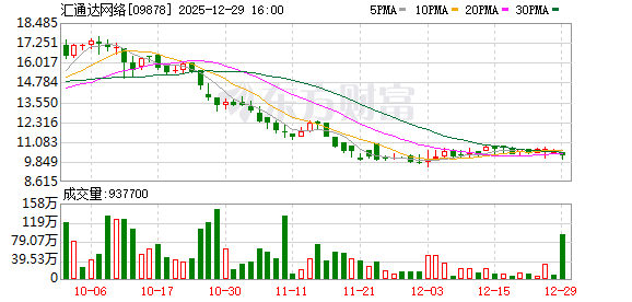 汇通达网络(09878.HK)12月29日耗资305.82万港元回购30万股