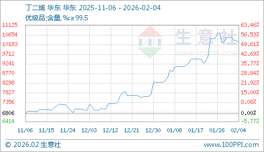 02月04日丁二烯10300.00元/吨 15天上涨11.07%
