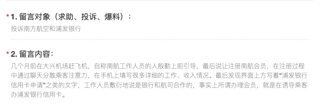 凤凰投诉|网友投诉南方航空诱导乘客办理信用卡