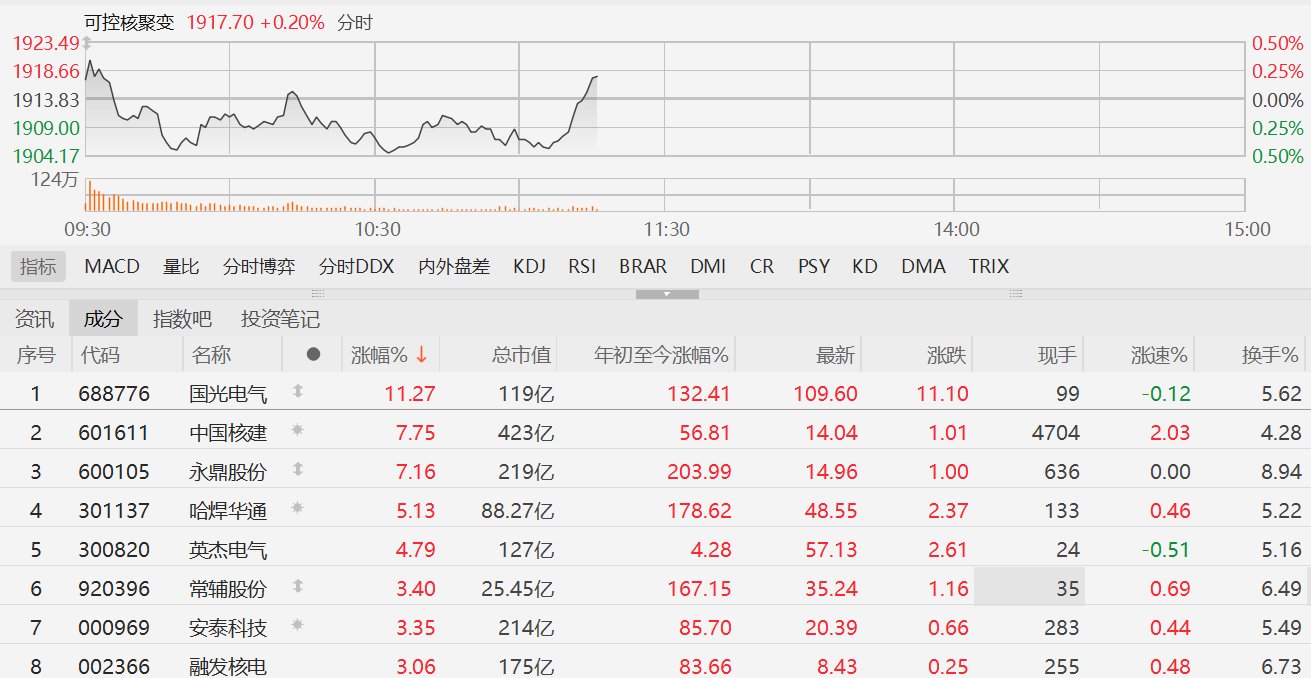 A股可控核聚变概念股拉升,中国核建涨超7%
