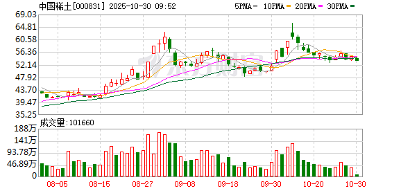 10月30日,北方稀土涨5.13%,截至发稿,报54.48元/股,成交85.96亿元,换手率4.50%,总市值 1969.49亿元。 风险提示:市场有风险,投资需谨慎。本文为AI大模型自动发布,任何在本文出现的信息(包括但不 限于个股、评论、预测、图表、指标、理论、任何形式的表述等)均只作为参考,不构成个人投资建 议。 责任编辑:小浪快报 数据显示,华安基金旗下1只基金重仓北方稀土。华安中证有色金属矿业主题指数发起式A(022083) 三季度增持10.39万股,持有股数14.93万股,占基金净值比例为7.47%,位居第二大重仓股。根据测 算,今日浮盈赚取约39.71万元。 华安中证有色金属矿业主题指数发起式A(022083)成立日期2024年9月26日,最新规模4614.61万。今 年以来收益83.82%,同类排名63/4216;近一年收益69.39%,同类排名184/3885;成立以来收益 74.74%。 华安中证有色金属矿业主题指数发起式A(022083)基金经理为许之彦。 截至发稿,许之彦累计任职时间17年193天,现任基金资产总规模1564.29亿元,任职期间最佳基金回报 223.88%, 任职期间最 ...