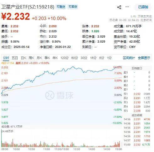 重磅规划发布!卫星产业ETF(159218)10CM涨停!中国卫星、航天电子涨停封板