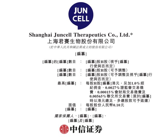据港交所12月10日披露,上海君赛生物股份(600201)有限公司(简称:君赛生物)向港交所主板递交上市申请,中信证券为其独家 保荐人。 | 編纂]的[編纂]數目 : [編纂]股H股(視乎[編纂] | | --- | | 行使與否而定) | | [編纂]數目 :[编纂]股H股(可予調整) | | [编纂]數目 : [編纂]股H股(可予調整及視乎[編纂]行 | | 使與否而定) | | 最高[編纂] : 每股H股[編纂]港元,另加1.0%經 | | 紀佣金、0.0027%證監會交易徵 | | 費 · 0.00015% 會財局交易徵費及 | | 0.00565%聯交所交易費(須於[編纂] | | 時以港元繳足,多繳股款可予退還) | | 面值 : 每股股份人民幣0.10元 | | [编纂] : [编纂] | | 獨家保薦人、[編纂]·[編纂]· | | [編纂]及[編纂] | | 加中层证头 | 招股书显示,君赛生物是一家致力于实体瘤创新细胞疗法与创新药开发的生物科技企业,专注开发更安全、更有效、更可及、更 可负担的免疫细胞疗法,不受任何固定分子靶点限制,覆盖最常见或最难治的实体肿瘤。 根据弗若斯特沙利文的资料, ...